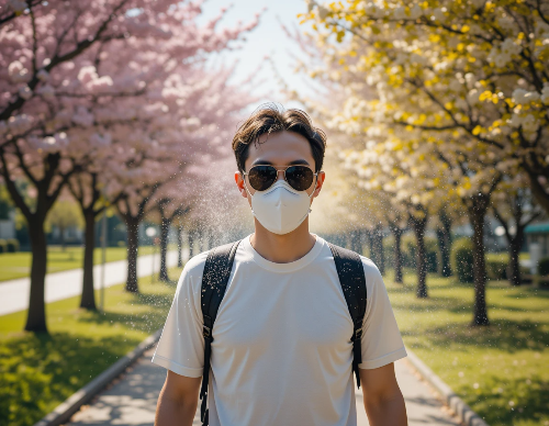 - 외출 시 마스크, 선글라스 착용 (꽃가루 차단용 KF94 마스크 추천)