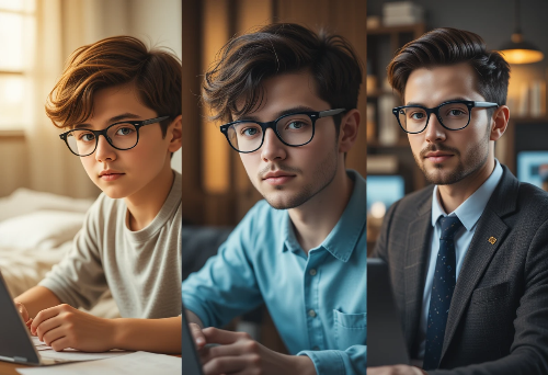 → 공부와 컴퓨터, 독서에 집중하다 보니 시력이 안 좋아져 자연스럽게 안경 착용 - 편한 옷차림